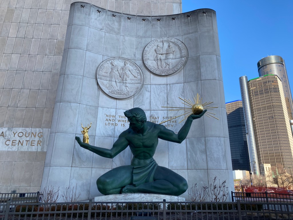 Spirit of Detroit Statue – The Spirit of Detroit statue was commissioned and installed in the 1950s and bears the seals of the City of Detroit and Wayne County as well as a Biblical inscription. The statue is a community symbol and will don the jersey of professional Detroit sports teams during the playoffs. I really liked how powerful of a statement this statue seemed to make.