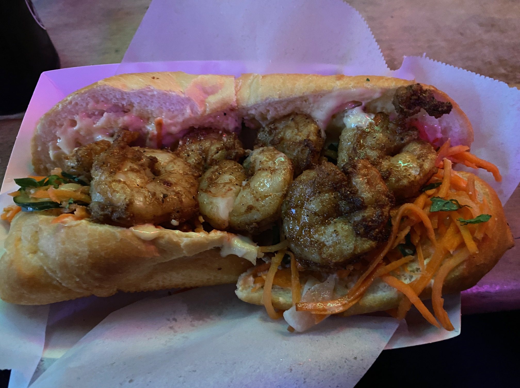 Killer PoBoys – Tucked in the back of the bar at Erin Rose is Killer PoBoys. Po’boys are a sandwich originally from Louisiana that are made with meat or seafood, vegetables, sauce, and served on French bread. The shrimp po’boy I had was delicious and consisted of seared gulf shrimp with pickled carrots, cucumber, and sriracha aioli in a baguette.