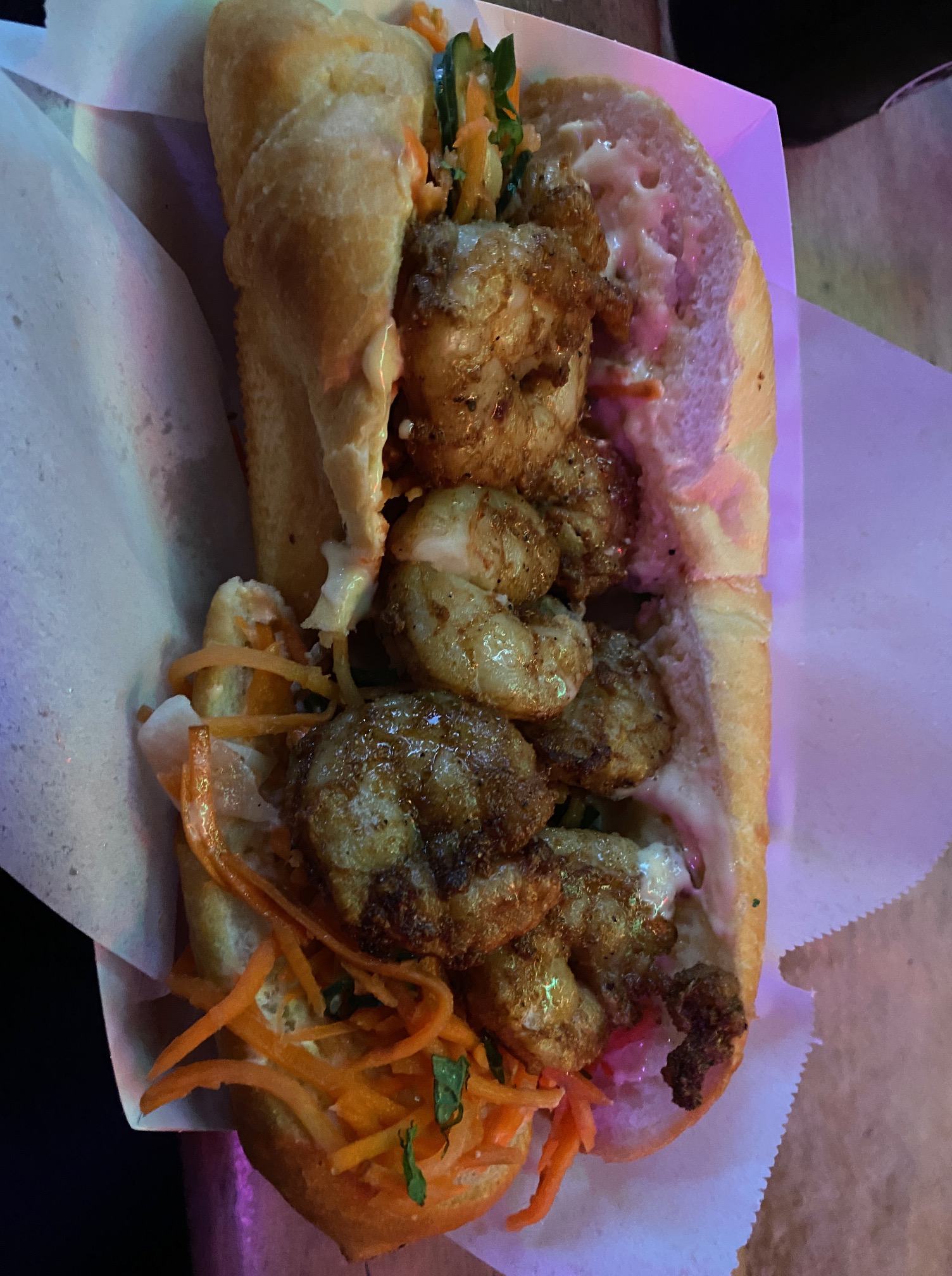 Killer PoBoys – Tucked in the back of the bar at Erin Rose is Killer PoBoys. Po’boys are a sandwich originally from Louisiana that are made with meat or seafood, vegetables, sauce, and served on French bread. The shrimp po’boy I had was delicious and consisted of seared gulf shrimp with pickled carrots, cucumber, and sriracha aioli in a baguette.