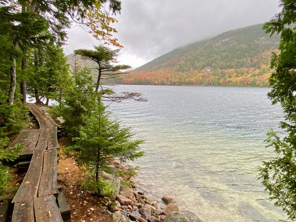 Jordan Pond Path – This was my favorite activity of the trip. We arrived early and hiked the path counterclockwise, which meant we didn’t see another person until halfway through. Starting with the rockier terrain made the rest of the walk easier, and the mix of boardwalks, sandy shoreline, and mountain views reflecting in the pond was stunning—especially with the fall foliage all around.